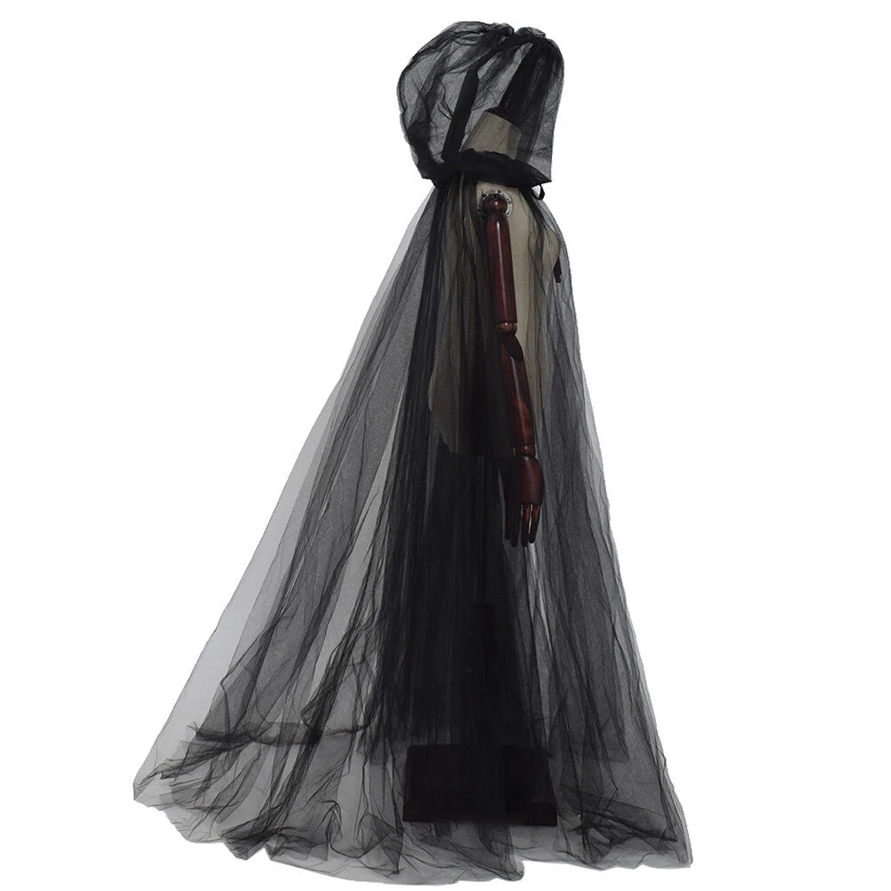 Hooded Mesh Cloak Cape – Men and Women Long Witch Wedding Bride Costume, Gothic Halloween Party Dark Goth Cosplay Outfit